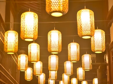 Warmth crafted by hand. Artisanal lighting fixtures cast natural beauty.